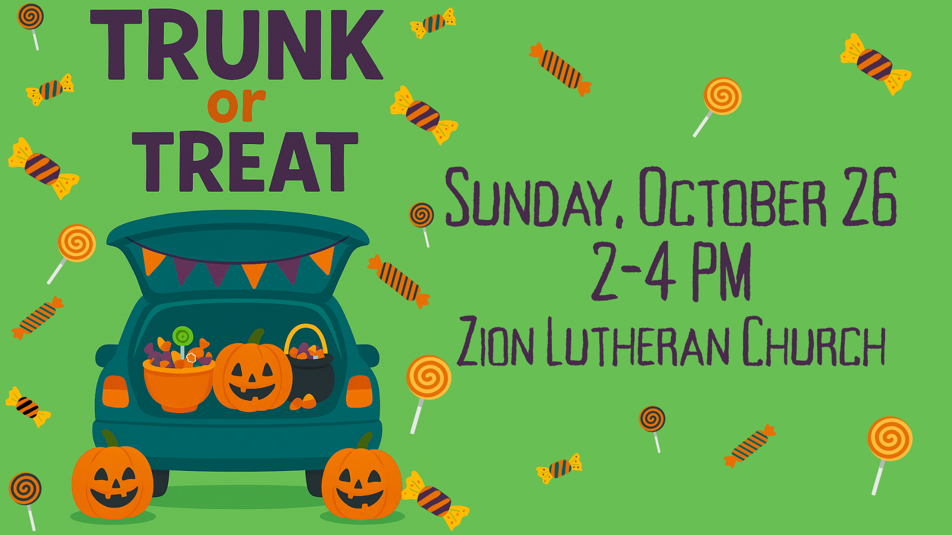 Zion will be hosting a Trunk or Treat event at the end of October. The event will be held on Sunday, October 26 from 2-4 PM. Plans are in the works for desserts and drinks to be served and a photo area to allow families an opportunity to have a picture taken, along with games and activities in the fellowship hall.